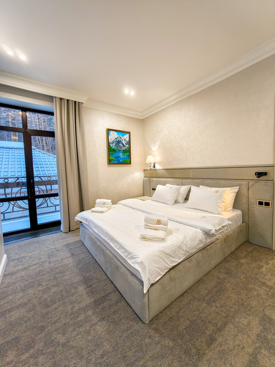 Наши современные номера созданы для комфортного отдыха после активного дня на склонах или увлекательных горных прогулок. Из окон открываются потрясающие виды на Эльбрус и живописные ущелья.